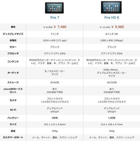 Amazonタブレット『Fire 7』『Fire HD 8』を両方購入しました! 2台同時購入したからこそ分かる『使用感』や『比較の感想』を報告させていただきます!! まずはスペックを紹介 まずは一覧で確認してください。(価格は通常価格です) 表で見るかぎり違うの…